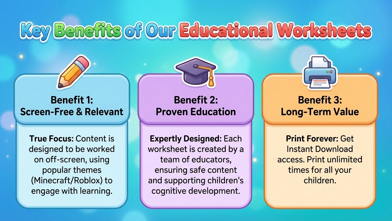 ”My son usually only wants to be on his iPad. But with the Minecraft Math Builder, he’s excited to color blocks while counting. It’s truly a genius distraction!” – Sarah K., Parent